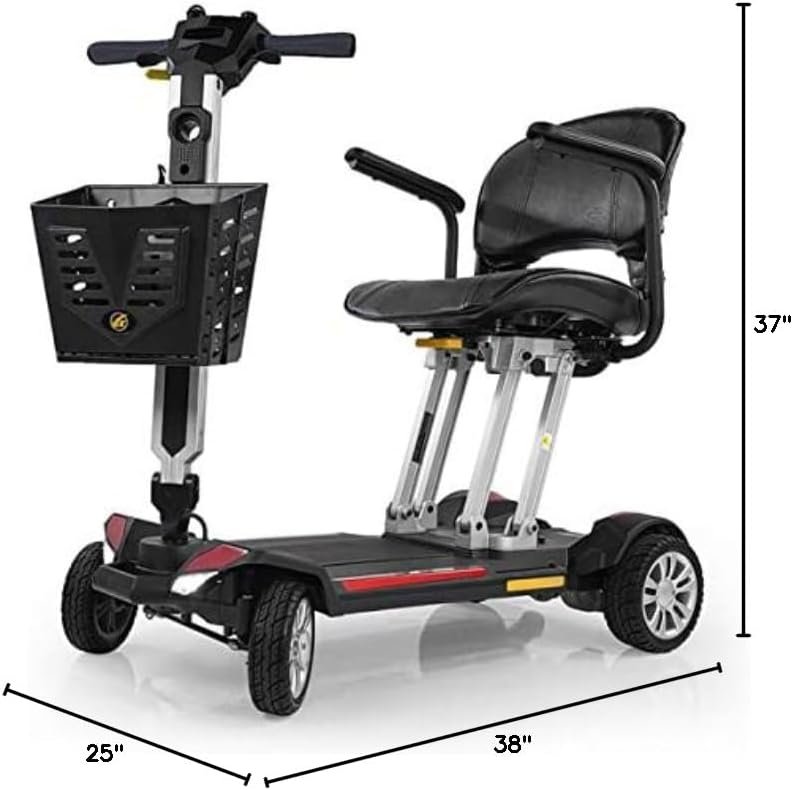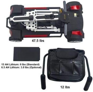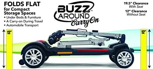 Buzzaround CarryOn Fold-Flat Mobility Scooter – Plane & Cruise Friendly, Lightweight, 300 lb Capacity – 12 AH Airline Lithium Battery + Free 6.5 AH Travel Battery – Red/Blue