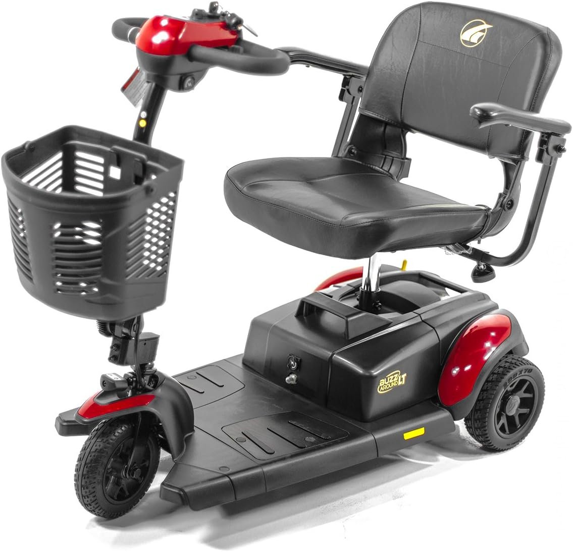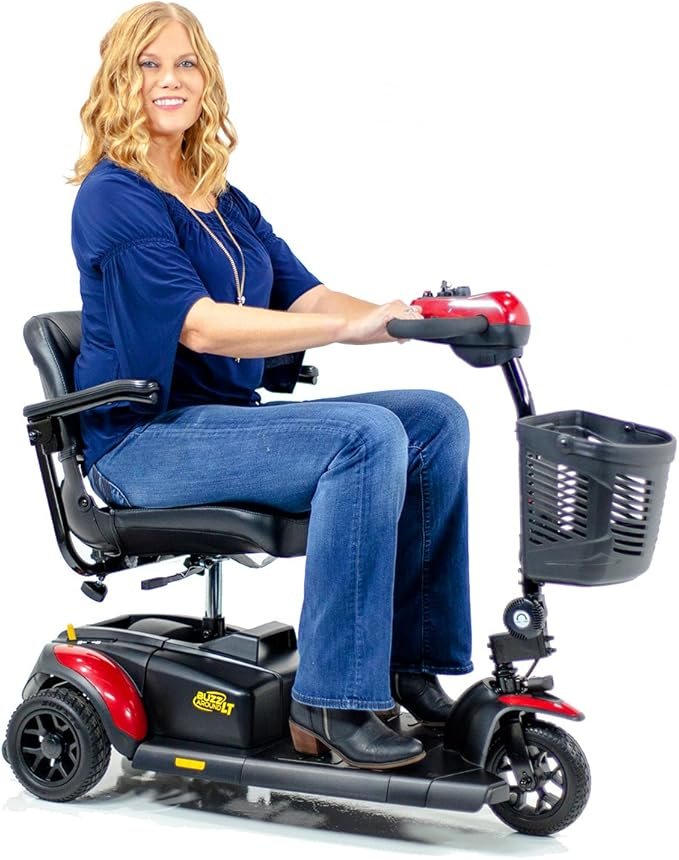 The all-new Buzzaround LT scooter is the smallest, lightest, and most portable Buzzaround scooter to get you where you want to go in comfort and style! This sporty design features a plush, stadium style seat, a weight capacity of 300 lbs., and increased foot room. The new Buzz LT also has a charger port in the delta tiller, a new hard plastic rugged basket, and painted color shrouds. Enjoy its tight indoor maneuverability and smooth outdoor use with 2.5″ of ground clearance!