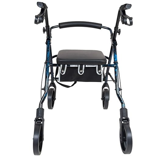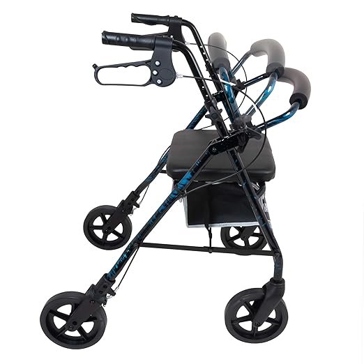 Deluxe Flame Finish Aluminum Rollator – 4 Wheel Medical Rolling Walker with Wheels, Blue Flame