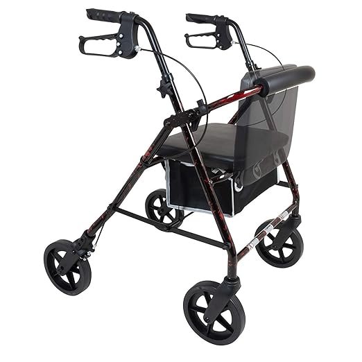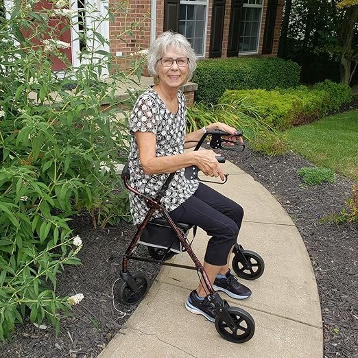 - ✔ SMART SAFE and CONVENIENT DESIGN: The ergonomic padded handles are accompanied with an easy-to-operate braking system that can be locked for increased safety when not in motion. What’s more, this four-wheeled walker is also equipped with a waterproof storage bag under the seat for convenient storage and security of your personal items.