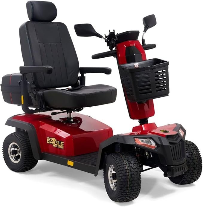 Eagle All-Terrain GR596 – Ultimate Off-Road Mobility Scooter for Rugged Outdoor Adventures, 500 lb Capacity, 13″ Tires, Suspension, LED Lights, & 34-Mile Drive Range (Red)