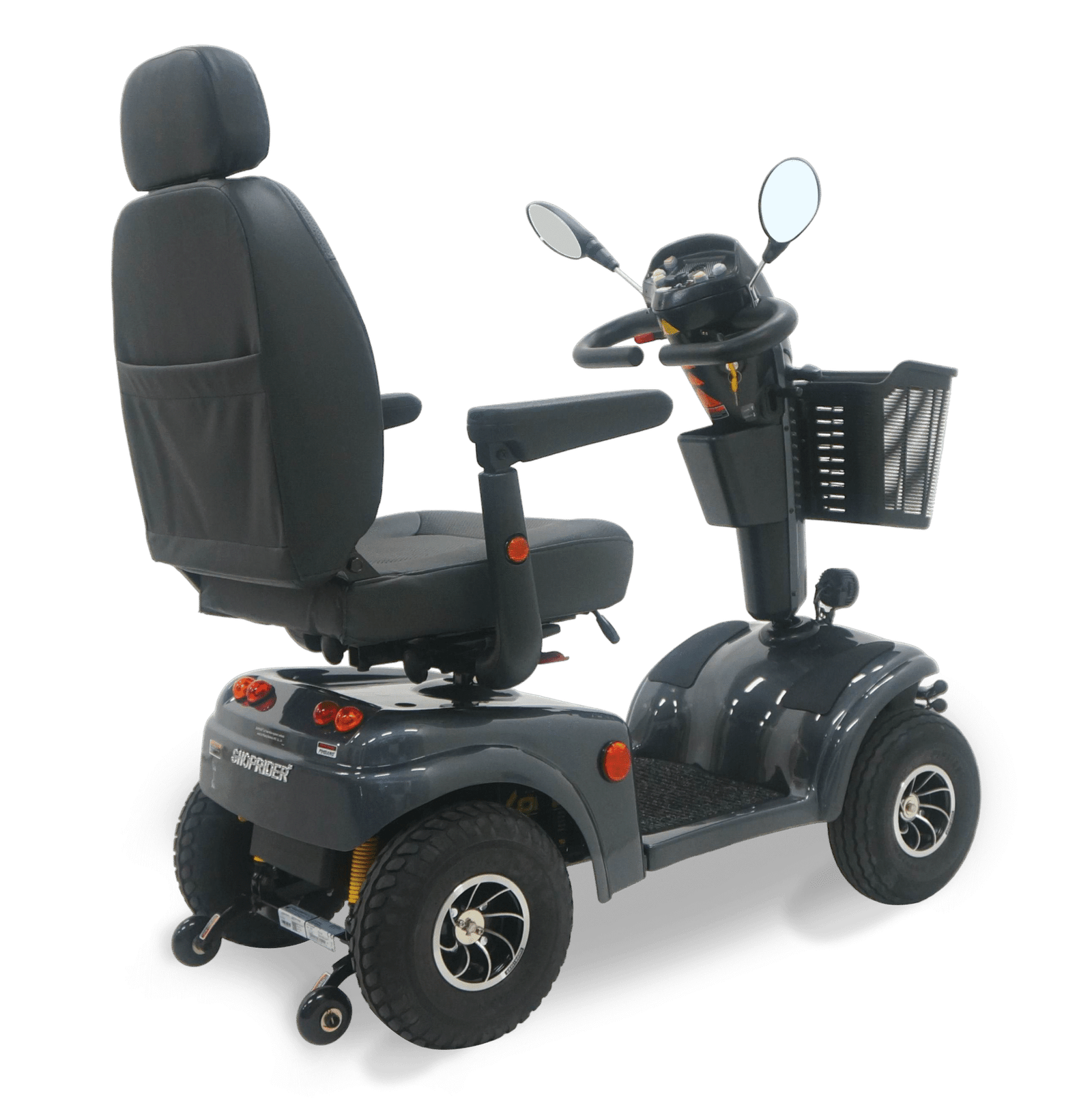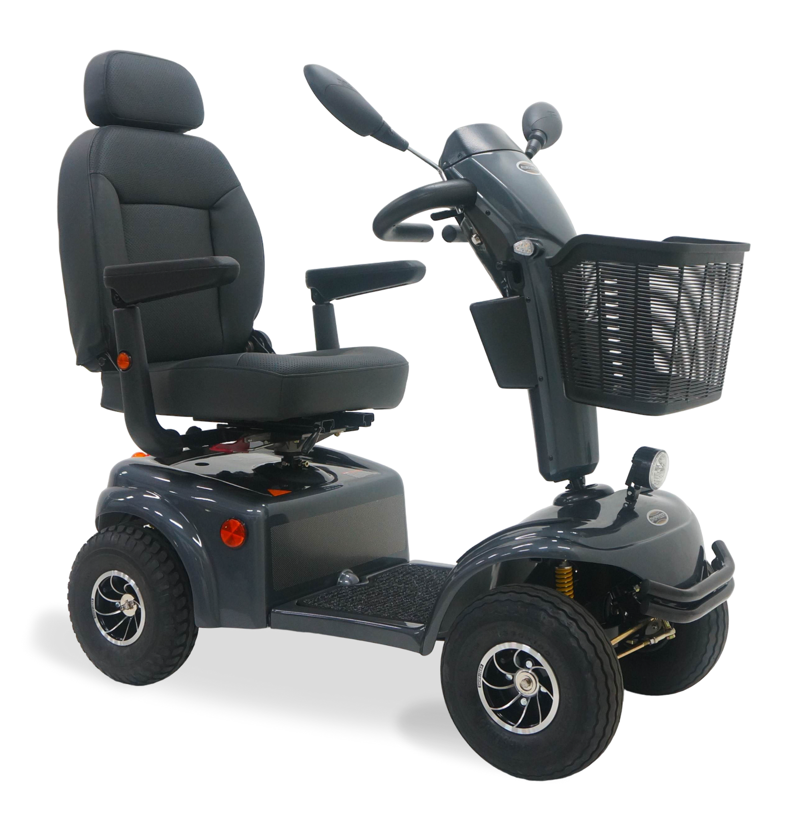The Expedition XL4 is a four-wheel scooter with a 350 lb. weight capacity. The unit comes standard with a deluxe captain’s seat that can accommodate most users. It has an adjustable tiller for added user comfort and a front head light for added convenience for evening operation. The 12.5” pneumatic wheels give the unit a 3” ground clearance for operation on multiple terrains. The Explorer also features a built in USB charging port, and cell phone storage pocket.