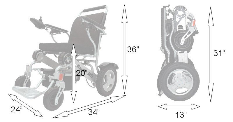 The Falcon With Reclining Back Rest Folds Into A Compact Area That Is Only (13″ x 31″ x 24″) And Will Fit In The Trunk Of Most Any Car. Even A Small Compact Car Will Accommodate The Falcon Folding Power Wheelchair.
