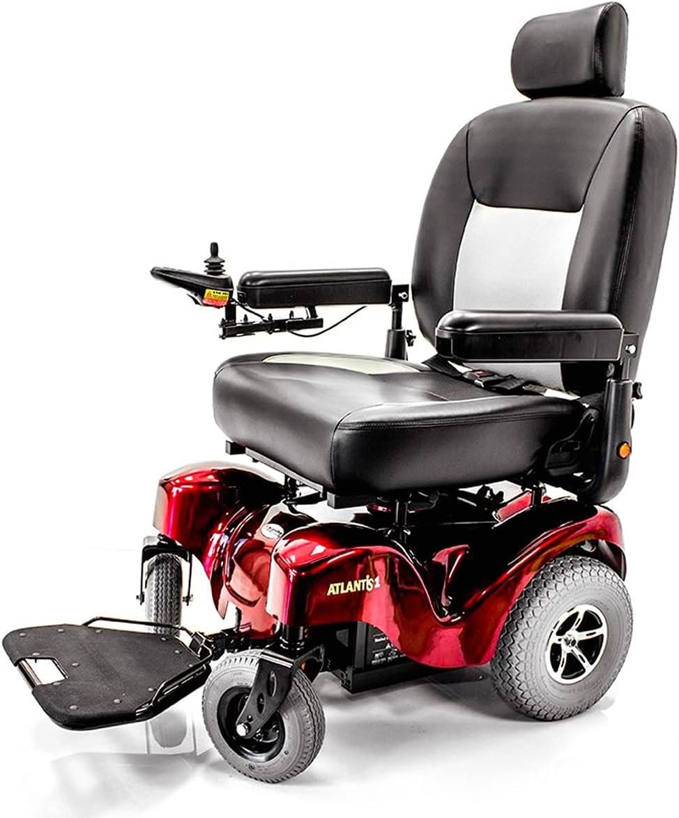 The Atlantis Heavy Duty P710 Electric Wheelchair is designed to take you wherever you need to go. The Atlantis boasts a 600 lbs. weight capacity and maximum speed of up to 5 mph. The seat posts provide more stability and a durable structure for the frame. The wide seat and high back ensure the maximum comfort for users. Max Speed: 5mph Specifications: Range: up to 32 miles Turning Radius: 31.5″ Ground Clearance: 3″ Motor: DC 24V, 300W Controller: Dynamic Shark 60A/PG VR2 60A Battery: 12V/Group 24 x 2pcs Charger: 6A off-board Maximum Gradient: 10° Casters: 9″ pneumatic tires Drive Wheels: 12″ pneumatic tires Brakes: intelligent, regenerative, electromagnetic Seat Width: 24″ Seat Depth: 20″ Seat Height: 23″ – 24″ Backrest Height: 22″ Overall Length: 44″ Overall Height: 50″ Overall Width: 27″ Total Weight: 304 lbs. Weight Capacity: 600 lbs.