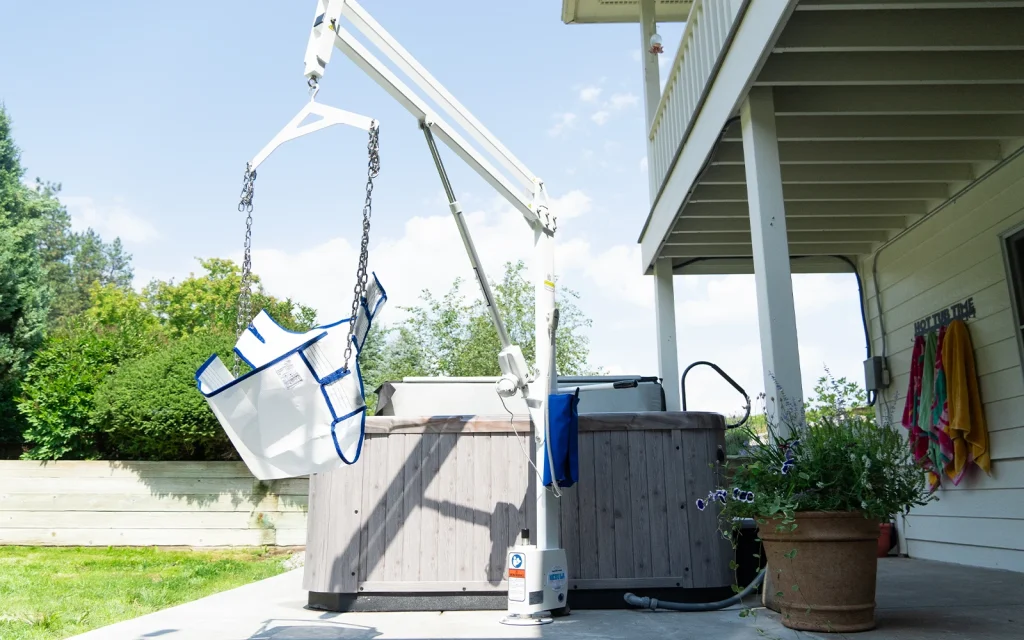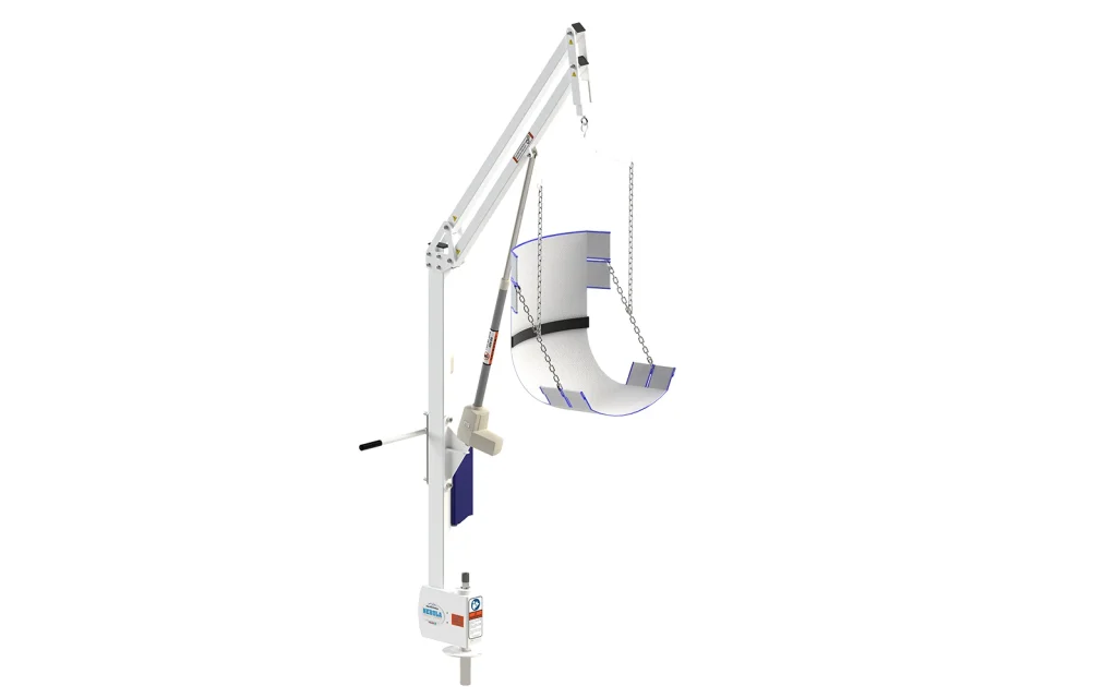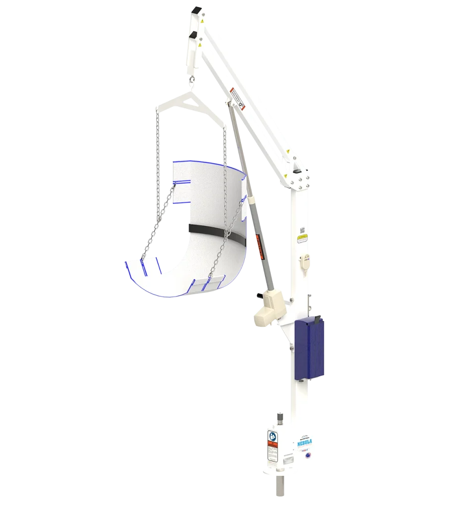 Introducing the new Nebula Pool Lift, the ideal solution for residential above-ground pools and spas with wall heights ranging from 16″ to 60+” (41 cm – 152 cm), depending on wall width and user height. With a weight capacity of 400 lb (181 kg), the Nebula provides reliable, powered lifting for users, while its 360-degree manual rotation allows for smooth, controlled positioning.