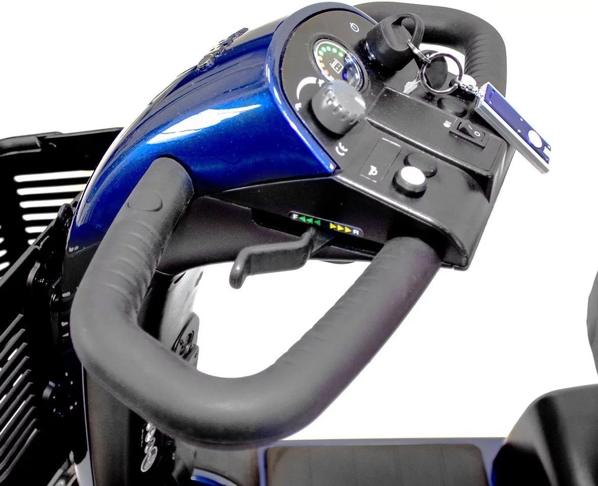 The Victory 10 4-wheel Full-Size scooter combines the best of both worlds: durability and style. Available in vibrant Candy Apple Red or sleek Viper Blue, you can customize the sporty design to match your preferences. This scooter is truly built to last: with a 400lb weight capacity, backed by a 2-year manufacturer’s warranty and lifetime frame warranty, this is an incredibly durable model for the price. With this scooter, experience a blend of style, durability, and performance that transforms your daily mobility experience.