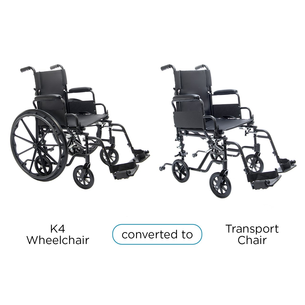- Dual functionality: Easily converts between self-propelled wheelchair and transport chair.