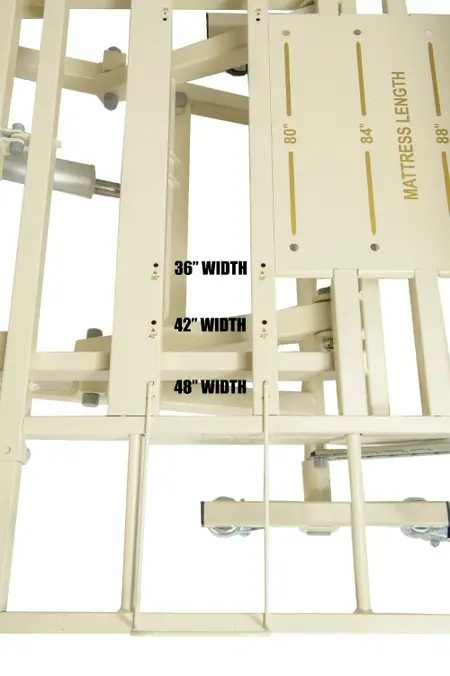 Designed for ultimate adjustability, you can expand the width from 36” to 48” and the bed’s length from 80” to 88” without requiring any tools— simply extend or compress the frame in moments. Perfect for busy facilities that care for a wide range of users, this bed guarantees a bed that fits them like a glove. Choose from different rail options: quarter rail, pivot assist rails, Q-bar assist rail, and others to offer extra support for patients.
