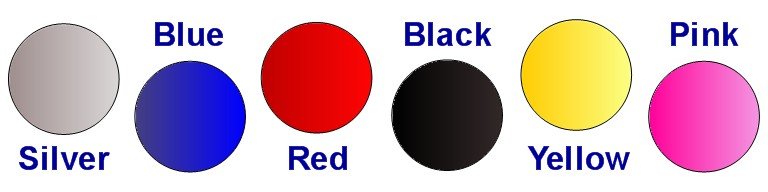 Available In All Six Stunning Colors. Silverado Silver, Caribbean Blue, Inferno Red, Jet Back, Marigold Yellow And Rosey Pink.