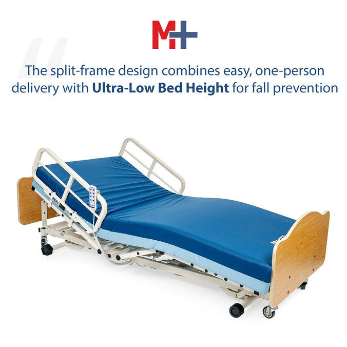 - The split-frame design combines easy, one-person delivery with ultra-low bed height for fall prevention